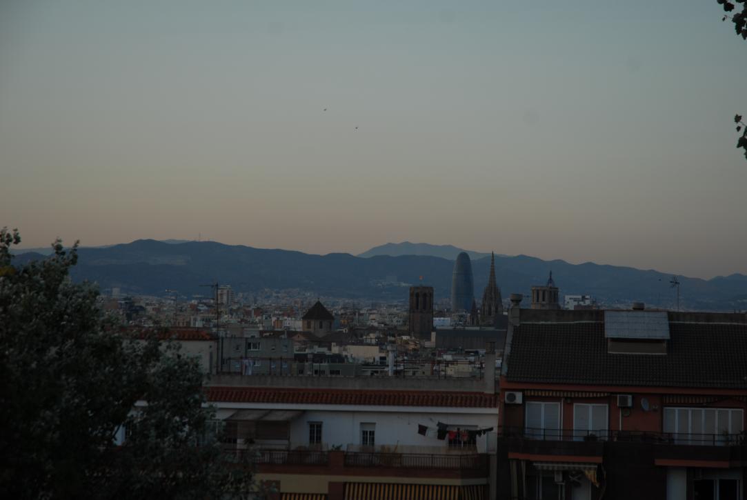 (105. /ex lightbox) View over Barcelona from Montjuïc: Torre Agbar y Sagrada Familia