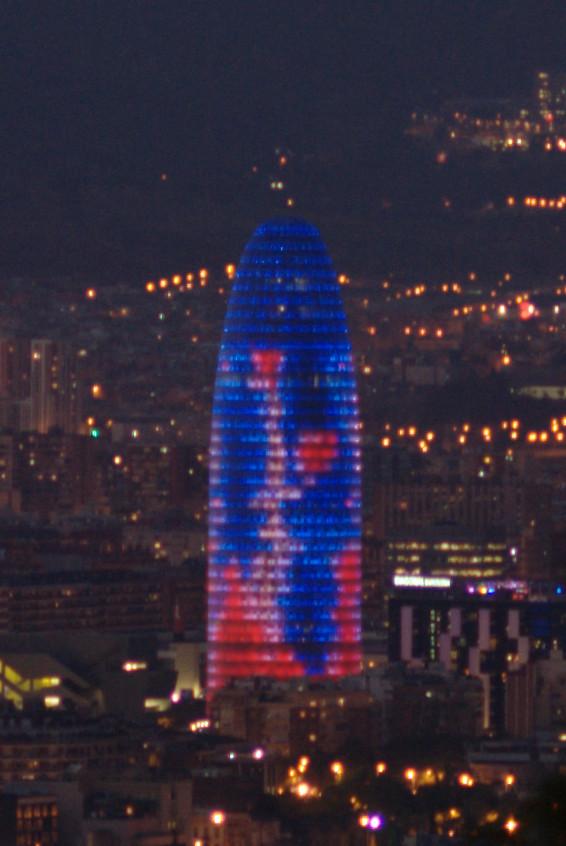 (110. /ex lightbox) View over Barcelona from Montjuïc: crop on Torre Agbar