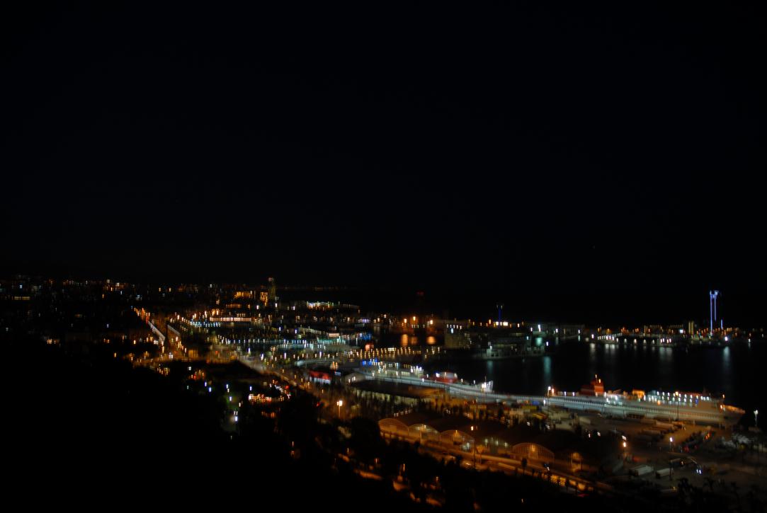 (109. /ex lightbox) View over Barcelona from Montjuïc: Freight harbor II. The Moon.