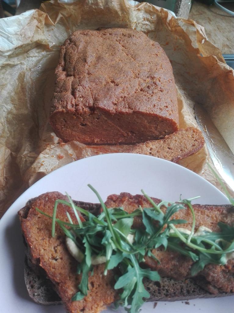 Veganer Leberkäse Masse im Rohzustand/Tofu und Flüssigkeit passieren (ich habe den Mixstab verwendet), feste Bestandteile getrennt davon vermengen, dann zusammenkneten./Ich habe den "Leberkäse" zuerst eine halbe Stunde im vorgeheizten Rohr bei 200 ° C Ober- und Unterhitze gebacken, dann noch eine Stunde bei 180 °. Mit Umluft reichen in der zweiten Stufe vermutlich 160 °.