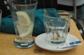 Frittelle (to be eaten plain with sugar, filled with Nutella (hazelnut cream) or naked (without sugar) as we ordered it (took a second try, though - the cooks weren't used to serving it without sweetening)